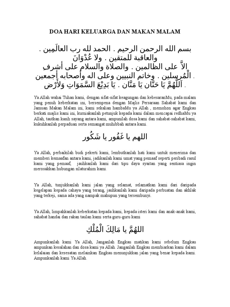 Doa Hari Keluarga Dan Makan Malam Pdf