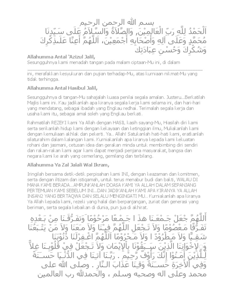 January 31 2020 at 131 am. 1 Bacaan Doa Majlis Dalam Bahasa Melayu. Kami merafakkan rasa kesyukuran kepada-Mu kerana telah mengizinkan kami untuk berada dan.